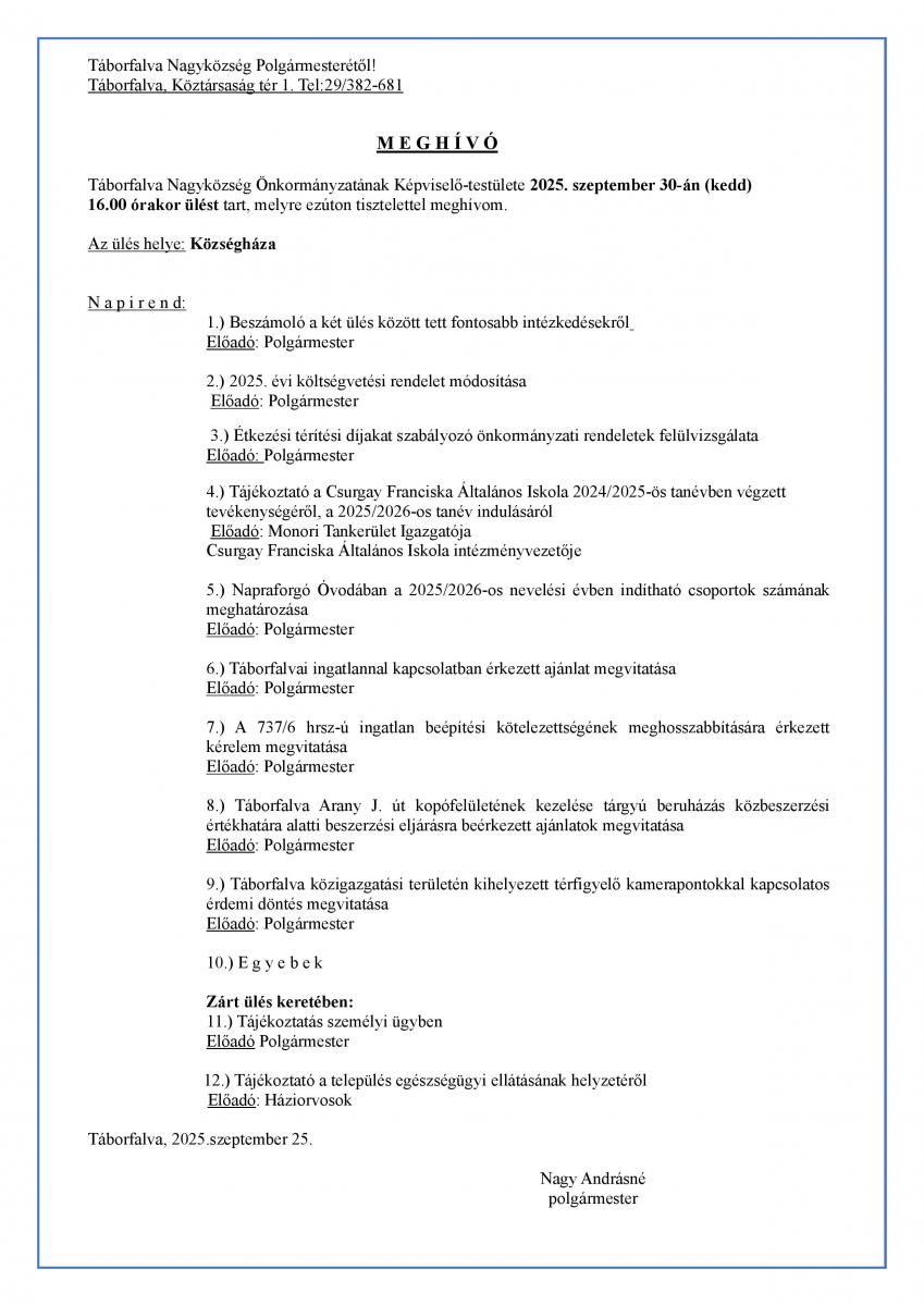 2025. augusztus 12. – 2025. augusztus 15. kedd - csütörtök 08.00.-12.00. óra és 13.00.-17.00. óra